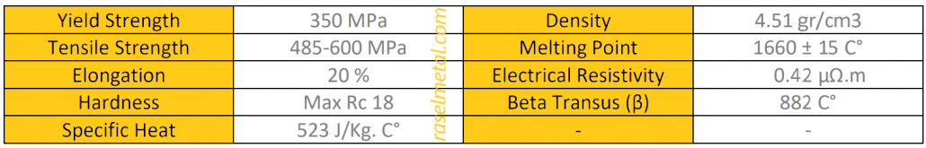 خواص فیزیکی و خواص مکانیکی تیتانیوم گرید ۵
